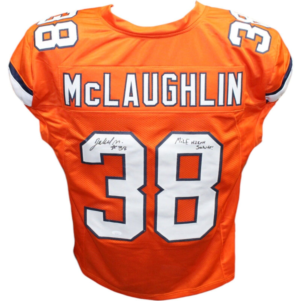 Jaleel McLaughlin Autographed/Signed Orange Pro Style Jersey JSA 42958 The number in the listing title is just an inventory sku for our records and is not the authentication number. The item pictured is a stock photo unless otherwise noted. This is a Pro Style Orange Jersey that was personally autographed by Jaleel McLaughlin. Includes a certificate of authenticity from James Spence Authentication (JSA) and Denver Autographs.