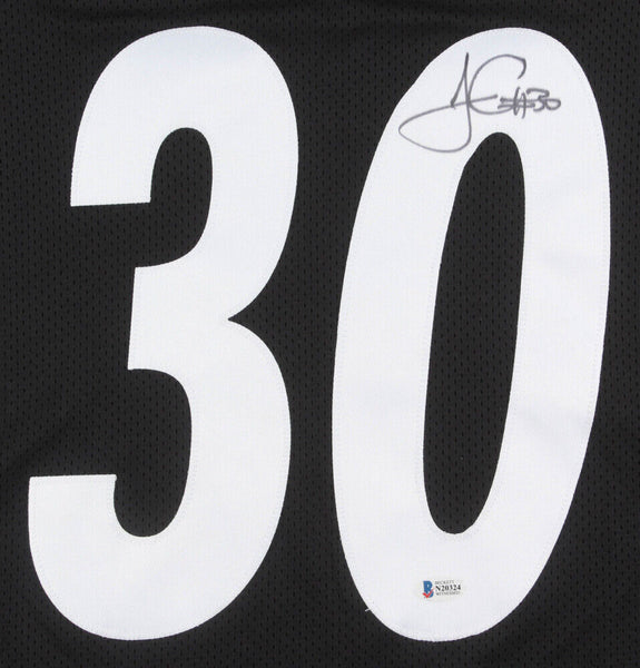 Custom on-field style jersey. Everything is sewn on, size XL. Hand-signed in black felt-tip pen by James Conner. The lot / autograph(s) includes an official Beckett Authentication Services serially numbered hologram and matching COA for authenticity purposes. The signing of this item was witnessed by Beckett.Authentication: Beckett COA