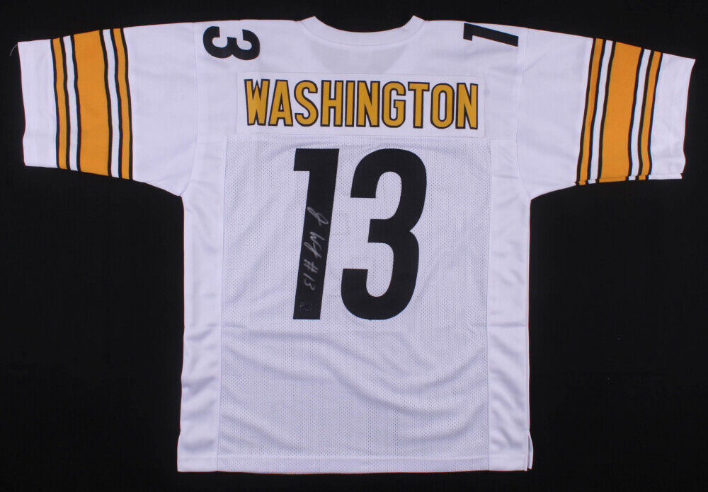 Custom on-field style jersey. Everything is sewn on, size XL. Hand-signed in silver felt-tip pen by James Washington. The lot / autograph(s) includes an official James Washington Player hologram for authenticity purposes.Authentication: Washington Player Hologram