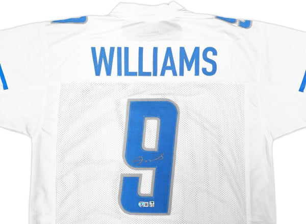 Featured is a Jameson Williams signed custom football jersey. This jersey has been hand signed by Williams and comes with the Beckett hologram and certificate of authenticity. This jersey has professionally sewn letters and numbers and is size XL. This jersey has no team tags or emblems and is intended as a sports collectible. This jersey would make a great addition to any sports collection! SPECIFICATIONS Autographed By: Jameson Williams Team: Detroit Lions Sport: Football Authentication: Beckett Grading Services