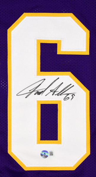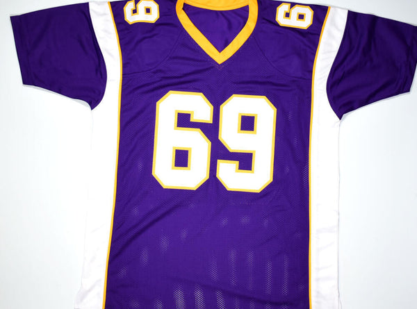Jared Allen Autographed Purple Pro Style Jersey w/ 2 Inscriptions-Beckett W Hologram *Black THIS IS NOT AN NFL JERSEY. THIS HAS NO TAGS, NO LOGOS, NO EMBLEMS. This is a Jared Allen of the Minnesota Vikings hand autographed custom made (Non Name Brand) authentic style (Stitched Letters and Numbers) jersey. Inscribed 136 career sacks, 4x 1st Team All-Pro. This item has a Beckett Witnessed Authentication, which comes with a numbered hologram and a QR code for verification. You can view this item on the Beckett website. It was signed either at a public autograph appearance or a private signing. This is a stock photo of the item. Although you may not receive this exact item, the item you receive is virtually identical, brand new, and in great shape. Jersey size is XL.