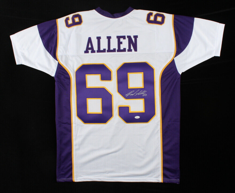 Custom on-field style jersey. Everything sewn on, size XL. Hand-signed by Jared Allen.The lot / autograph(s) includes an official James Spence Authentication (JSA) hologram and matching COA for authenticity purposes. The signing of this item was witnessed by JSA.Authentication: JSA COA