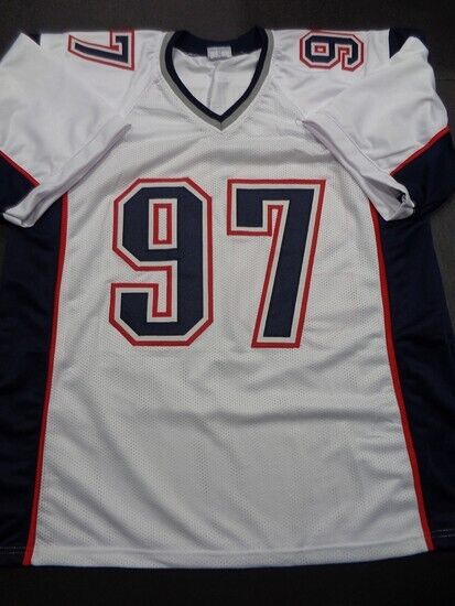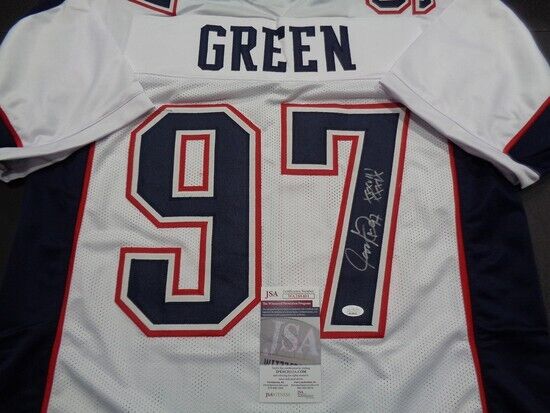 Custom on-field style jersey. Everything sewn on, size XL. Hand-signed in silver paint pen by Jarvis Green. The lot / autograph(s) includes an official James Spence Authentication (JSA) hologram and matching COA for authenticity purposes.Authentication: JSA COA