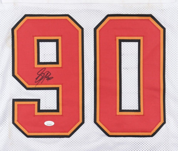 Custom on-field style jersey. Everything is sewn on, size XL. Hand-signed by Jason Pierre-Paul. Please note, the nameplate is stained on the back of the jersey.The autograph includes an official James Spence Authentication (JSA) hologram for authenticity purposes. The signing of this item was witnessed by JSA.Authentication: JSA Hologram