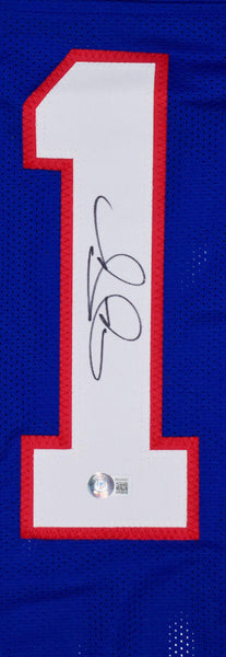 Jason Sehorn Autographed Blue Pro Style Jersey-Beckett W Hologram *Black THIS IS NOT AN NFL JERSEY. THIS HAS NO TAGS, NO LOGOS, NO EMBLEMS. This is a hand autograph of Jason Sehorn on a Custom Made (non name brand) Authentic Style Jersey with stitched letters and numbers.This item has a Beckett Witnessed Authentication, which comes with a numbered hologram and a QR code for verification. You can view this item on the Beckett Authentication website. It was signed either at a public autograph appearance or a private signing. This is a stock photo of the item. Although you may not receive this exact item, the item you receive is virtually identical and brand new in great shape. Jersey size is XL.