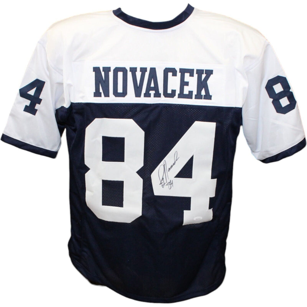 Jay Novacek Autographed/Signed Pro Style Thanksgiving Jersey JSA 43431 The number in the listing title is just an inventory sku for our records and is not the authentication number. The item pictured is the exact item you will receive, please see photos for condition. This is a Pro Style Thanksgiving Jersey that was personally autographed by Jay Novacek. Includes a certificate of authenticity from James Spence Authentication (JSA) and Denver Autographs.