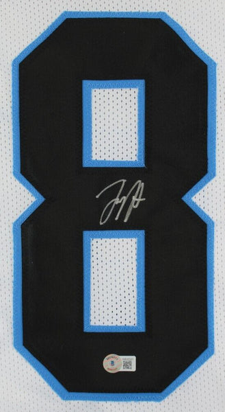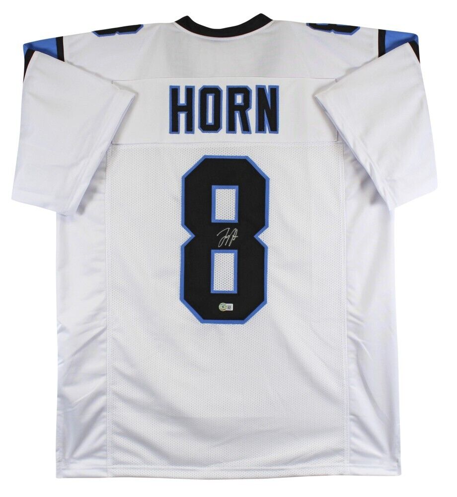 Custom on-field style jersey. Everything sewn on, size XL. Hand-signed by Jaycee Horn. The lot / autograph(s) includes an official Beckett Authentication Services serially-numbered hologram and QR Code card for authenticity purposes. The signing of this item was witnessed by Beckett.Authentication: Beckett QR Code card