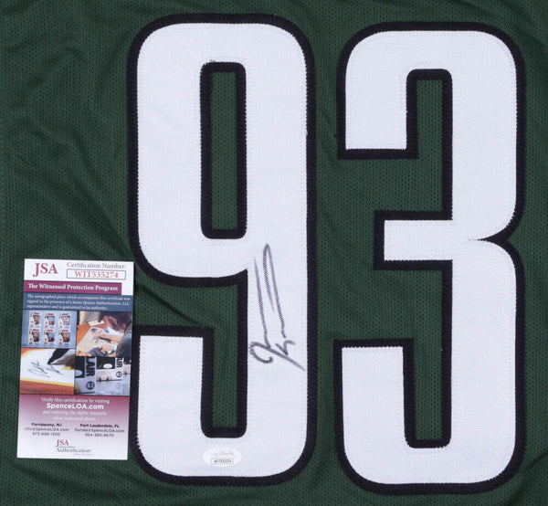 Custom on-field style jersey. Everything sewn on, size XL. Hand-signed in black Sharpie pen by Jevon Kearse. The lot / autograph(s) includes an official James Spence Authentication (JSA) hologram and matching COA for authenticity purposes.Authentication: JSA COA