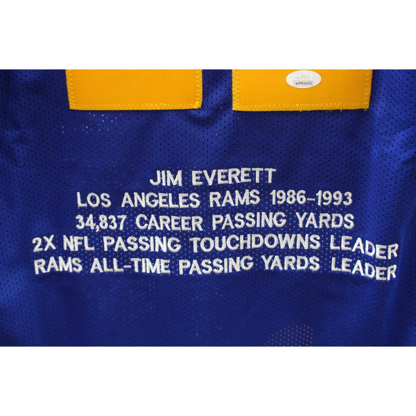 The number in the listing title is just an inventory sku for our records and is not the authentication number. The item pictured is a stock photo unless otherwise noted. This is a Pro Style Blue Stat size XL Jersey with sewn on numbers that was personally autographed by Jim Everett. Includes a certificate of authenticity from James Spence Authentication (JSA) and Denver Autographs.FREE SHIPPING within the USA on orders over $10!