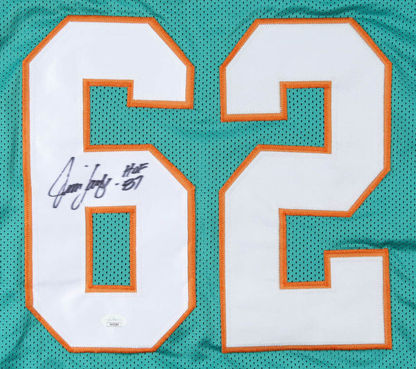 Custom on-field style jersey. Everything is sewn on, size XL. Hand-signed and inscribed in silver paint pen by Jim Langer (HOF). The lot / autograph(s) includes an official James Spence Authentication (JSA) hologram and matching COA for authenticity purposes. Authentication: JSA COA