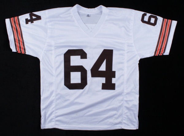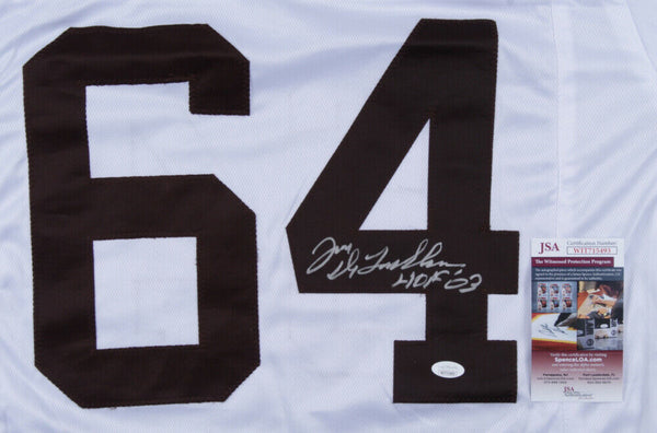 Custom on-field style jersey. Everything is sewn on, size XL. Hand signed and inscribed in black felt tip pen by Joe DeLamielleure (HOF). The lot / autograph(s) includes an official James Spence Authentication (JSA) hologram and matching COA for authenticity purposes. The signing of this item was witnessed by JSA.Authentication: JSA COA