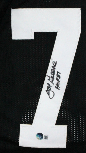 Joe Greene Autographed Black Pro Style Jersey w/ HOF-Beckett W Hologram *Black THIS IS NOT AN NFL JERSEY. THIS HAS NO TAGS, NO LOGOS, NO EMBLEMS. This is a Joe Greene of the Pittsburgh Steelers hand autographed custom made (Non Name Brand) authentic style jersey (stitched letters and numbers) inscribed with "HOF". This item has a Beckett Witnessed Authentication, which comes with a numbered hologram with a QR code for verification. You can view this item on the Beckett website and it shows when and where the item was signed. It was signed either at a public autograph appearance or a private signing. This is a stock photo of the item. Although you may not receive this exact item, the item you receive is virtually identical, brand new, and in great shape. Jersey size is XL.