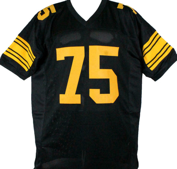 Joe Greene Autographed Black/Yellow Pro Style Jersey w/ HOF-Beckett W Hologram *Black THIS IS NOT AN NFL JERSEY. THIS HAS NO TAGS, NO LOGOS, NO EMBLEMS. This is a Joe Greene of the Pittsburgh Steelers hand autographed custom made (Non Name Brand) authentic style jersey (stitched letters and numbers) inscribed with "HOF". This item has a Beckett Witnessed Authentication, which comes with a numbered hologram and a generic certificate of authenticity. You can view this item on the Beckett website and it shows when and where the item was signed. It was signed either at a public autograph appearance or a private signing. This is a stock photo of the item. Although you may not receive this exact item, the item you receive is virtually identical, brand new, and in great shape. Jersey size is XL.