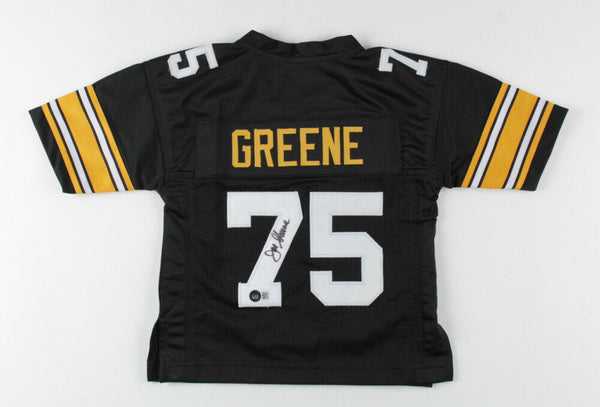 Custom on-field style jersey. Everything sewn on, size kids. Has been hand-signed by Joe Greene (HOF).The lot / autograph(s) includes an official Beckett Authentication Services serially-numbered hologram and matching COA for authenticity purposes.Authentication: Beckett COA