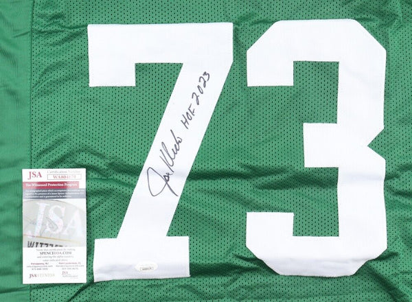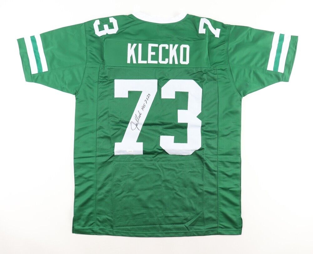 Custom jersey with everything sewn on, size Adult XL. Hand-signed and inscribed by Joe Klecko (HOF).The autograph(s) includes an official James Spence Authentication (JSA) hologram and matching COA for authenticity purposes. The signing of this item was witnessed by JSA.Authentication: JSA COA