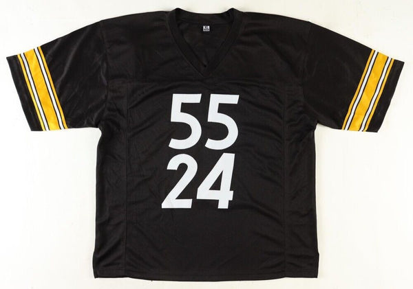 Custom on-field style Steelers Bumble Bee Throwback jersey with everything sewn on, size XL. Hand-signed by Joey Porter Jr. and Joy Porter Sr.The autograph(s) includes an official James Spence Authentication (JSA) hologram and matching COA for authenticity purposes. The signing of this item was witnessed by JSA.Authentication: JSA COACustom on-field style jerseys are a more affordable option for autograph seekers. These jerseys do not have any brand name or tags and are made in the Philippines. They feature stitched on names and numbers and are made to look very similar to the on-field jerseys that the players wear. These custom jerseys are very commonly used in the memorabilia industry.