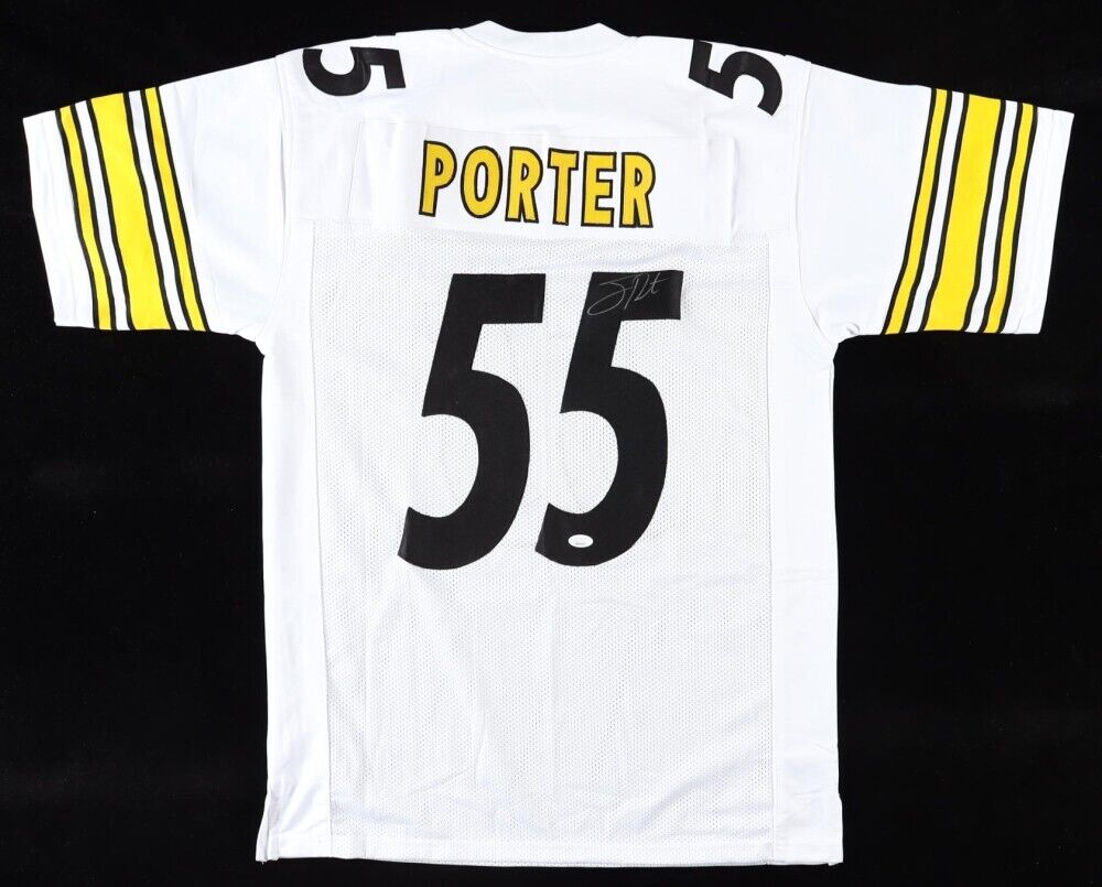 Custom on-field style jersey with everything sewn on, size XL. Hand-signed by Joey Porter Sr.The autograph(s) includes an official James Spence Authentication (JSA) hologram and matching COA for authenticity purposes. The signing of this item was witnessed by JSA.Authentication: JSA COACustom on-field style jerseys are a more affordable option for autograph seekers. These jerseys do not have any brand name or tags and are made in the Philippines. They feature stitched on names and numbers and are made to look very similar to the on-field jerseys that the players wear. These custom jerseys are very commonly used in the memorabilia industry.