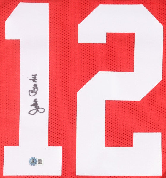 Custom on-field style jersey. Everything sewn on, size XL. Hand-signed by John Brodie.The autograph includes an official Beckett Authentication Services serially numbered scannable hologram and QR Code Card for authenticity purposes. Authentication: Beckett Scannable Hologram & QR Code Card