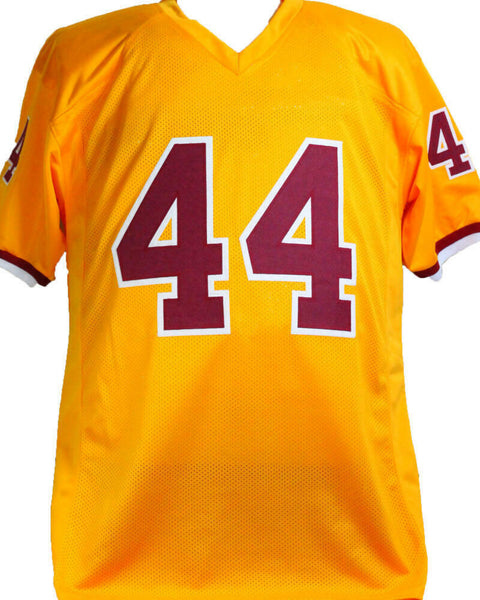 John Riggins Autographed Yellow Pro Style Jersey- Beckett W *Silver THIS IS NOT AN NFL JERSEY. THIS HAS NO TAGS, NO LOGOS, NO EMBLEMS. This is a hand autographed jersey of John Riggins on a Custom Made (Non Name Brand) Authentic Style (Stitched Letters and Numbers). This item has a Beckett Witnessed Authentication, which comes with a numbered and a matching Certificate of Authenticity. You can view this item on the Beckett website. It was signed either at a public autograph appearance or a private signing. This is a stock photo of the item. Although you may not receive this exact item, the item you receive is virtually identical, brand new, and in great shape. Jersey size is XL.