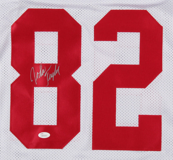 Custom on-field style jersey. Everything sewn on, size XL. Hand-signed in silver paint pen by John Taylor. The lot / autograph(s) includes an official James Spence Authentication (JSA) hologram and QR Code card for authenticity purposes. The signing of this item was witnessed by JSA.Authentication: JSA QR Code card