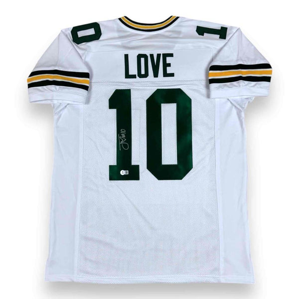 This signed item is brand new without tags or logos. This custom jersey is sewn in a size Large / XL. All the letters and numbers are sewn on! This item will make a great gift or a great addition to any collection at an AFFORDABLE PRICE! ATHLETE: Jordan Love ITEM: Custom Sewn Jersey AUTHENTICATION: This item comes with a Beckett Authentication serial #'ed hologram affixed to the item. To ensure authenticity, the hologram can be reviewed online. This process helps to ensure that the product purchased is authentic and eliminates any possibility of duplication or fraud. NOTE: All of our autographed jerseys are custom jerseys, unless otherwise noted. Our custom jerseys are NON-BRANDED, have NO logos, NO tags, NO patches, NO emblems. All letters and numbers are SEWN-ON. The non-branded jerseys are made specifically for the player(s) to sign, for collectible purposes.