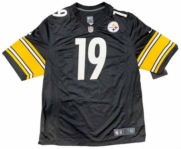 Custom on-field style jersey. Everything is sewn on, size XL. Hand-signed in silver paint pen by JuJu Smith-Schuster. The autograph includes an official Total Sports Enterprises (TSE) hologram and matching COA for authenticity purposes. Authentication: Total Sports Enterprises COA