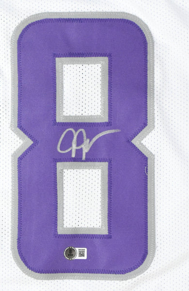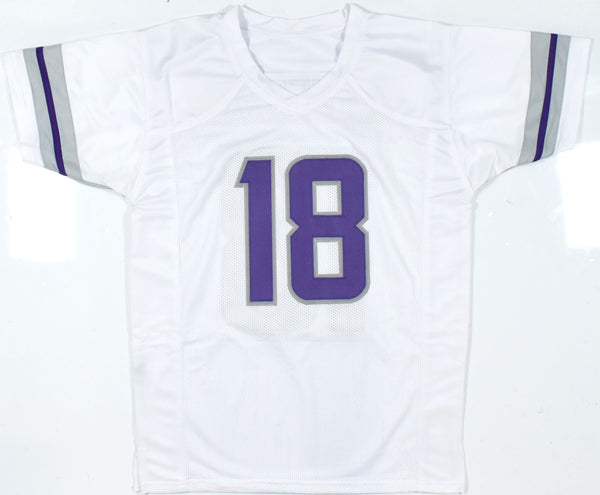 THIS IS NOT AN NFL JERSEY. THIS HAS NO TAGS, NO LOGOS, NO EMBLEMS. This is a hand autograph of Justin Jefferson of the Minnesota Vikings on a Custom Made (non-name brand) Authentic Style Jersey with stitched letters and numbers. This item has a Beckett Witnessed Authentication, which comes with a Beckett numbered sticker hologram and a QR Code for verification. You can view this item on the Beckett Authentication website. It was signed either at a public autograph appearance or a private signing. This is a stock photo of the item. Although you may not receive this exact item, the item you receive is virtually identical and brand new in great shape. Jersey size is XL. THIS IS NOT AN NFL JERSEY. THIS HAS NO TAGS, NO LOGOS, NO EMBLEMS. This is a hand autograph of Justin Jefferson of the Minnesota Vikings on a Custom Made (non-name brand) Authentic Style Jersey with stitched letters and numbers. This item has a Beckett Witnessed Authentication, which comes with a Beckett numbered sticker hologram and a QR Code for verification. You can view this item on the Beckett Authentication website. It was signed either at a public autograph appearance or a private signing. This is a stock photo of the item. Although you may not receive this exact item, the item you receive is virtually identical and brand new in great shape. Jersey size is XL.
