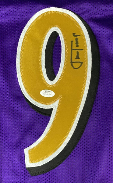 Featured is a Justin Tucker signed custom football jersey. This jersey has been hand signed by Tucker and comes with the JSA hologram. This jersey features professionally sewn letters and numbers and is size XL. This jersey has no team tags or emblems and is intended as a sports collectible. This jersey would make a great addition to any sports memorabilia collection! SPECIFICATIONS Autographed By: Justin Tucker Team: Baltimore Ravens Sport: Football Authentication: James Spence Authentication (JSA)