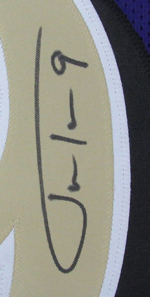 Justin Tucker Signed/Autographed Purple Custom Football Jersey Baltimore Ravens Size XL. This jersey is authenticated by JSA and includes their Tamper-proof Hologram Sticker and Certificate of Authenticity.