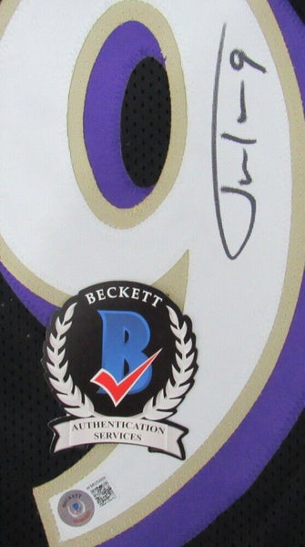 Custom on-field style jersey. Everything sewn on, size XL. Hand-signed by Justin Tucker.The lot / autograph(s) includes an official Beckett Authentication Services serially-numbered hologram and QR Code Card for authenticity purposes. The signing of this item was witnessed by Beckett.Authentication: Beckett Hologram with QR Code Card Shop our ebay store / Confines Collectibles for thousands of different autographed jerseys