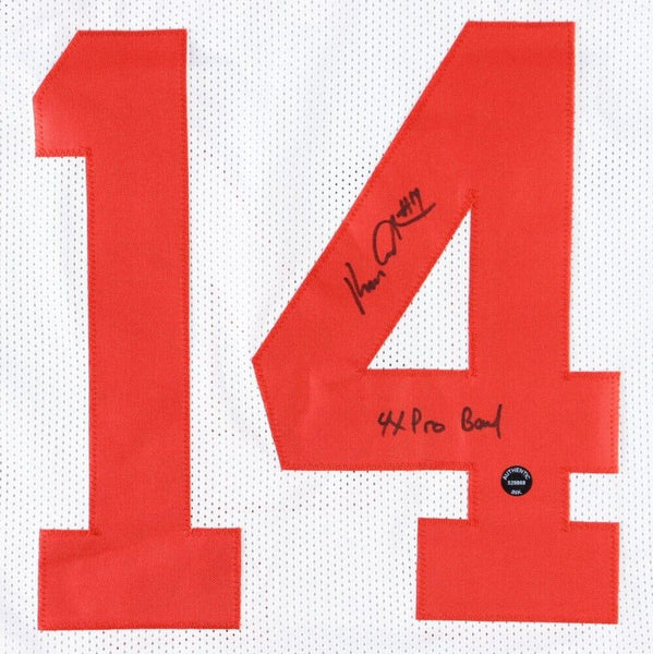 Custom jersey with everything sewn on. Hand-signed and inscribed by Ken Anderson.The lot / autograph(s) includes an official Playball Ink hologram for authenticity purposes.Authentication: Playball Ink Hologram