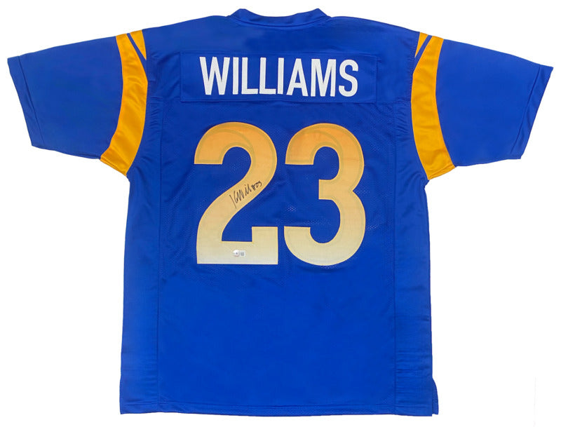 This Los Angeles Rams blue custom jersey has been personally hand-signed by Super Sports Center exclusive athlete, Kyren Williams. It comes with an individually numbered, tamper-evident hologram from Beckett Authentic. To ensure authenticity, the hologram can be reviewed online. This process helps to ensure that the product purchased is authentic and eliminates any possibility of duplication or fraud.Kyren Williams is the newest exclusive athlete to the Super Sports Center family.