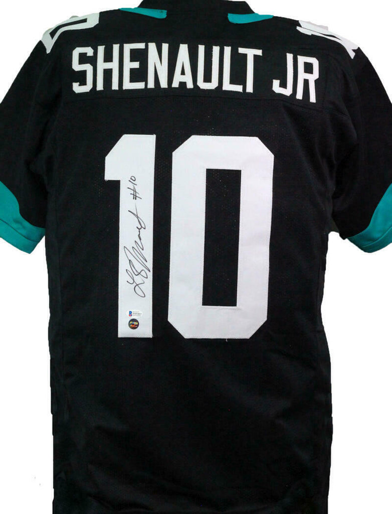 Laviska Shenault Jr Autographed Black Pro Style Jersey - Beckett W *Black THIS IS NOT AN NFL JERSEY. THIS HAS NO TAGS, NO LOGOS, NO EMBLEMS. This is a Laviska Shenault of the Jacksonville Jaguars hand autographed custom made (non name brand) authentic style jersey with stitched letters and numbers. This item has a Beckett Witnessed Authentication, which comes with a numbered and a matching Beckett Certificate of Authenticity. You can view this item on the Beckett Authentication website, it shows when and where the item was signed. It was signed either at a public autograph appearance or a private signing. This is a stock photo of the item. Although you may not receive this exact item, the item you receive is virtually identical, brand new, and in great shape. Jersey size is XL.