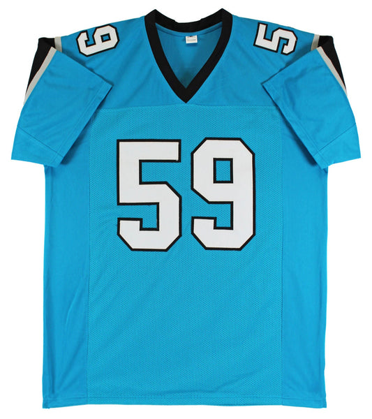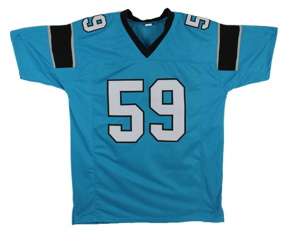 This Autographed Blue Pro Style Jersey has been Personally Signed by Luke Kuechly of the Carolina Panthers. This item is 100% Authentic to include a hologram by Beckett Authentication Services. This item may come with the new Beckett Authentication hologram that has a scannable QR code rather than the traditional COA. If you would like to have a COA, you are welcome to reach out to Beckett for a printed certification once you receive your item. This is a BAS Witnessed Protection Program item which means a Beckett Authentication Service representative was present when this item was being signed. This is a stock item. We conducted an autograph signing with Luke Kuechly and we have several of these available. The one you will receive will be of equal quality to the one pictured. This item can be verified through BAS Witnessed. This is a X-Large sized, non-branded, custom-stitched Jersey.