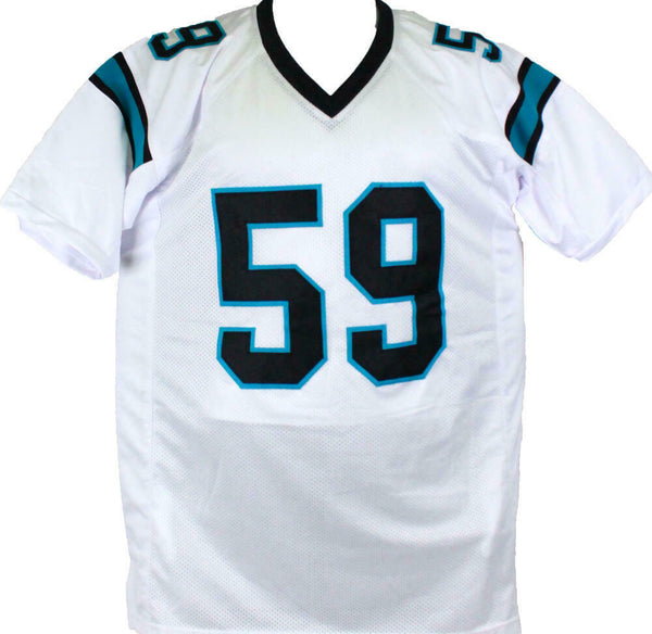 Luke Kuechly Autographed White Pro Style Jersey-Beckett W Hologram *Silver THIS IS NOT AN NFL JERSEY. THIS HAS NO TAGS, NO LOGOS, NO EMBLEMS. This is a Luke Kuechly of the Carolina Panthers hand autographed custom made (non name brand) authentic style (stitched letters and numbers) jersey. This item has a Beckett Witnessed Authentication, which comes with a numbered hologram and a QR code for verification. You can view this item on the Beckett Authentication website and it shows when and where the item was signed. It was signed either at a public autograph appearance or a private signing. This is a stock photo of the item. Although you may not receive this exact item, the item you receive is virtually identical, brand new, and in great shape. Jersey size is XL.