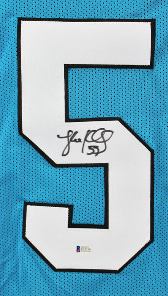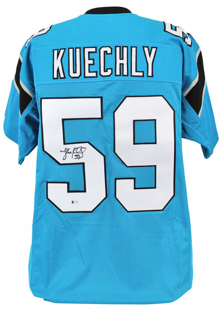 Custom on-field style jersey. Everything is sewn on, size XL. Hand-signed in black felt-tip pen by Luke Kuechly. The lot / autograph(s) includes an official Beckett Authentication Services serially-numbered hologram and matching COA for authenticity purposes. Authentication: Beckett COA