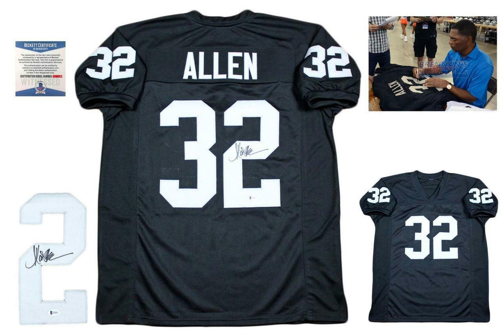 This signed item is brand new without tags. The jersey is custom sewn in a size (XL). All the letters and numbers are sewn on! This item will make a great gift or a great addition to any collection at an AFFORDABLE PRICE! ATHLETE: Marcus Allen ITEM: Custom Sewn Jersey AUTHENTICATION: This item comes with a Beckett Authentication Services (BAS) Witnessed Certificate of Authenticity and serial #'ed hologram affixed to the item. To ensure authenticity, the hologram can be reviewed online. This process helps to ensure that the product purchased is authentic and eliminates any possibility of duplication or fraud. This item was signed in the presence of a Beckett representative. NOTE: All of our autographed jerseys are custom jerseys, unless otherwise noted. Our custom jerseys are NON-BRANDED, have NO logos, NO tags, NO patches, NO emblems. All letters and numbers are SEWN-ON. The non-branded jerseys are made specifically for the player(s) to sign, for collectible purposes.