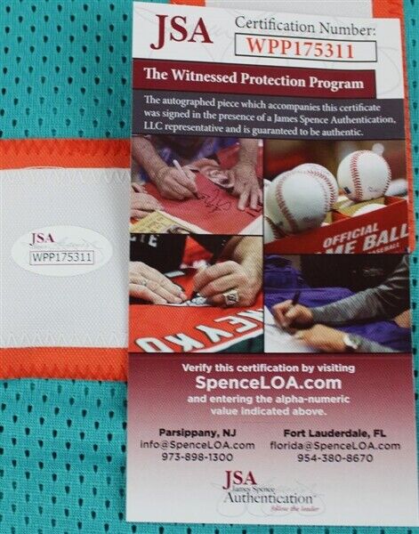 This autographed jersey has been personally hand-signed by Mark Clayton of the Miami Dolphins.This autograph is certified by James Spence Authentication's (JSA) Witnessed Protection Program. That means that a JSA representative was present when this item was signed. It comes with the numbered hologram and matching Certificate of Authenticity.