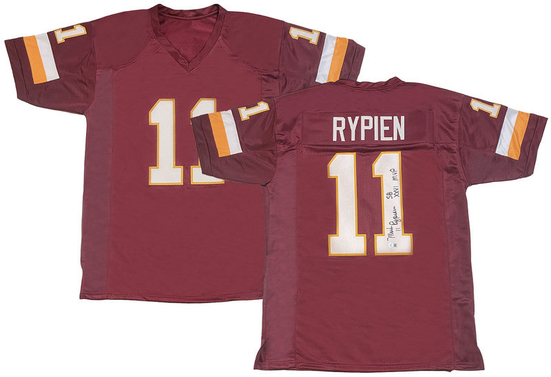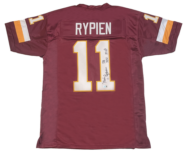 This custom maroon jersey has been personally hand-signed by Mark Rypien of the Washington Redskins. It comes with an individually numbered, tamper-evident hologram from Beckett Authentic. To ensure authenticity, the hologram can be reviewed online. This process helps to ensure that the product purchased is authentic and eliminates any possibility of duplication or fraud.