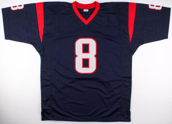 Custom on-field style jersey. Everything sewn on, size XL. Hand-signed in black felt-tip pen by Matt Schaub (Houston Texans, Atlanta Falcons). The lot / autograph(s) includes an official James Spence Authentication (JSA) hologram and matching COA for authenticity purposes. The signing of this item was witnessed by JSA.Authentication: JSA COA