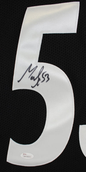 This Autographed Black Pro Style Jersey has been Personally Signed by Maurkice Pouncey of the Pittsburgh Steelers. This item is 100% Authentic to include a Certificate of Authenticity (COA) / hologram by JSA Witness. This is a JSA Witnessed Protection Program item which means a JSA representative was present when this item was being signed. We conducted an autograph signing with Maurkice Pouncey where multiples of the same item were signed. While the photographs are representative of this item, the size, placement and strength of the signature may vary. Each item is hand signed, therefore, each autograph is unique. This item can be verified through JSA Witness. This is a X-Large sized, non-branded, custom-stitched Jersey.