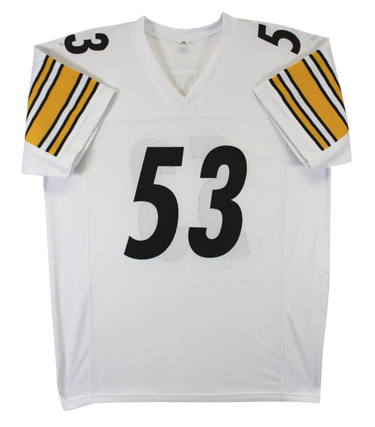 This Autographed White Pro Style Jersey has been Personally Signed by Maurkice Pouncey of the Pittsburgh Steelers. This item is 100% Authentic to include a Certificate of Authenticity (COA) / hologram by JSA. We conducted an autograph signing with Maurkice Pouncey where multiples of the same item were signed. While the photographs are representative of this item, the size, placement and strength of the signature may vary. Each item is hand signed, therefore, each autograph is unique. This item can be verified through JSA. This is a X-Large sized, non-branded, custom-stitched Jersey.