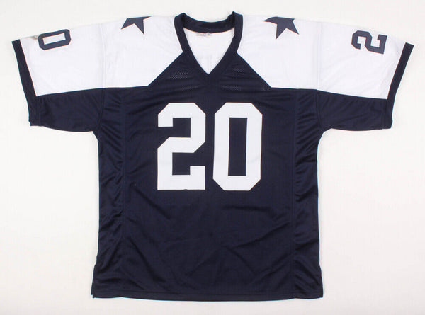 Custom on-field style jersey. Everything is sewn on, size XL. Hand-signed in black felt-tip pen by Mel Renfro (HOF). Please see photos for details regarding the condition of the jersey. The lot / autograph(s) includes an official James Spence Authentication (JSA) hologram and matching COA for authenticity purposes.Authentication: JSA COA