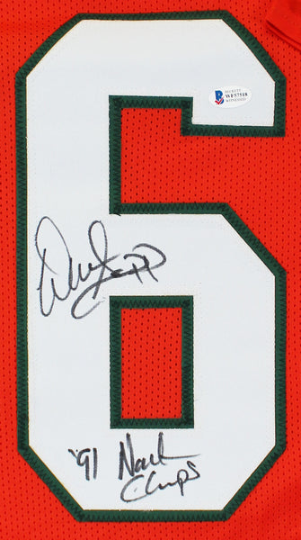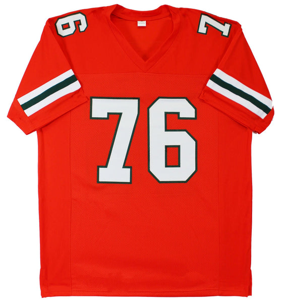 This Autographed Orange Pro Style Jersey with the inscription of "1991 National Champs" has been Personally Signed by Warren Sapp of the Miami Hurricanes.This item is 100% Authentic to include a hologram by Beckett Authentication Services. This item will come with the new Beckett Authentication hologram that has a scannable QR code rather than the traditional COA. If you would like to have a COA, you are welcome to reach out to Beckett for a printed certification once you receive your item. This is a BAS Witnessed Protection Program item which means a Beckett Authentication Service representative was present when this item was being signed. We conducted an autograph signing with Warren Sapp where multiples of the same item were signed. While the photographs are representative of this item, the size, placement and strength of the signature may vary. Each item is hand signed, therefore, each autograph is unique. This item can be verified through BAS Witnessed. This is a X-Large sized, non-branded, custom-stitched Jersey.