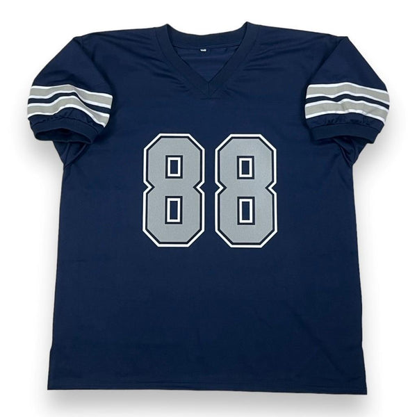This signed item is brand new without tags or logos. This jersey is a size Large / XL. Pro tackle twill letters and numbers. This item will make a great gift or a great addition to any collection at an AFFORDABLE PRICE! ATHLETE: Michael Irvin ITEM: Custom Jersey AUTHENTICATION: This item comes with a Beckett serial #'ed hologram affixed to the item. To ensure authenticity, the hologram can be reviewed online. This process helps to ensure that the product purchased is authentic and eliminates any possibility of duplication or fraud. NOTE: All of our autographed jerseys are custom jerseys, unless otherwise noted. Our custom jerseys are NON-BRANDED, have NO logos, NO tags, NO patches, NO emblems. Pro tackle twill letters and numbers. The non-branded jerseys are made specifically for the player(s) to sign, for collectible purposes.
