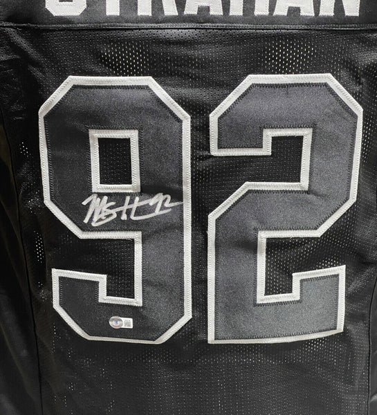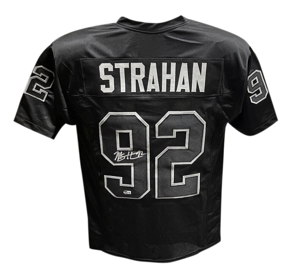 Michael Strahan Autographed/Signed Pro Style Jersey Black Beckett 40420 The number in the listing title is just an inventory sku for our records and is not the authentication number. The item pictured is a stock photo unless otherwise noted. This is a Pro Style Black Jersey with sewn on numbers that was personally autographed by Michael Strahan. Includes a certificate of authenticity from Beckett Authentication Services (BAS) and Denver Autographs.