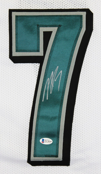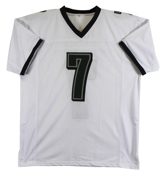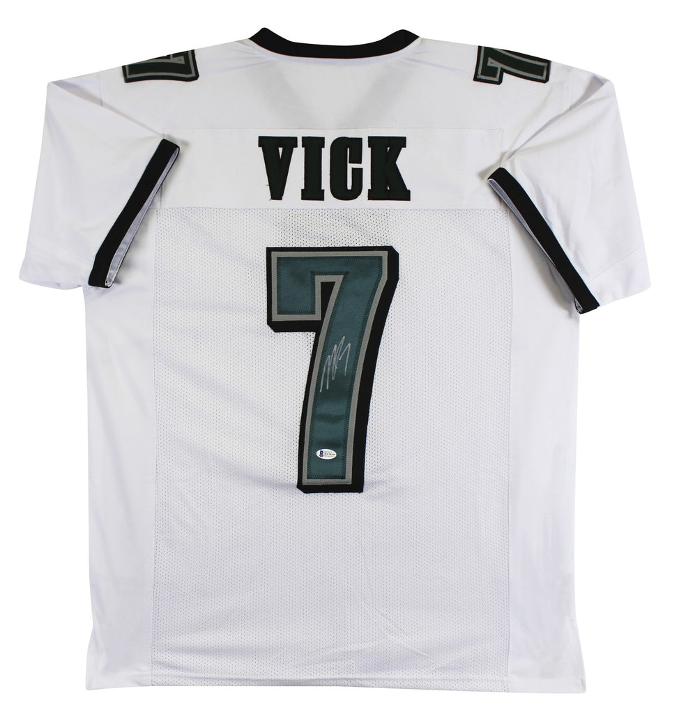 This Autographed White Pro Style Jersey has been Personally Signed by Michael Vick of the Philadelphia Eagles. This item is 100% Authentic to include a Certificate of Authenticity (COA) / hologram by Beckett Authentication Services. The authenticity can be verified on Beckett Authentication Services website. This is a X-Large sized, non-branded, custom-stitched Jersey.