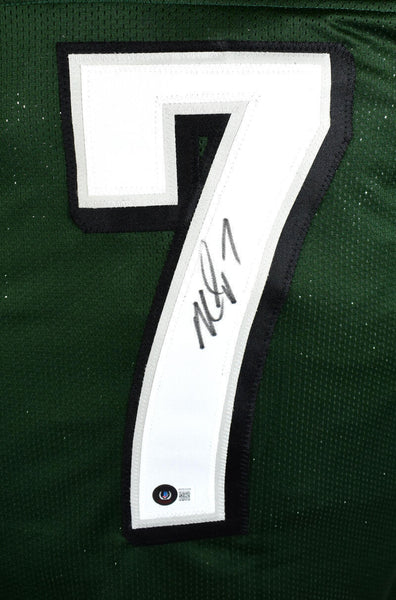 Michael Vick Autographed Green Pro Style Jersey - Beckett W Hologram *Black THIS IS NOT AN NFL JERSEY. THIS HAS NO TAGS, NO LOGOS, NO EMBLEMS. This is a hand autographed Jersey of Michael Vick. This is Custom Made (non name brand) Authentic Style (stitched letters and numbers) Jersey. This item has a Beckett Witness Authentication, which comes with a numbered hologram and a QR code for verification. You can view this item on the Beckett website. It was signed either at a public autograph appearance or a private signing. This is a stock photo of the item. Although you may not receive this exact item, the item you receive is virtually identical and brand new in great shape. Jersey size is XL.