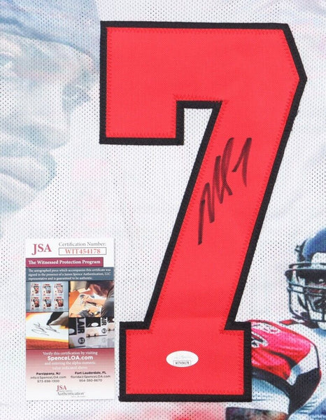 Custom on-field style jersey. Everything is sewn on, size XL. Hand-signed in black Sharpie pen by Michael Vick. The lot / autograph(s) includes an official James Spence Authentication (JSA) hologram and matching COA for authenticity purposes. The signing of this item was witnessed by JSA.Authentication: JSA COA