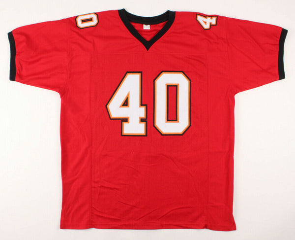 Custom on-field style jersey. Everything is sewn on, size XL. Hand-signed and inscribed in black felt-tip pen by Mike Alstott. The lot / autograph(s) includes an official Beckett Authentication Services serially numbered hologram for authenticity purposes. The signing of this item was witnessed by Beckett.Authentication: Beckett Hologram